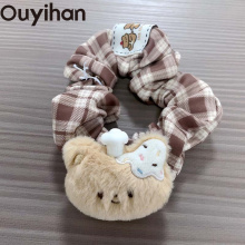 LS/小熊o泡系列咖色格子发圈