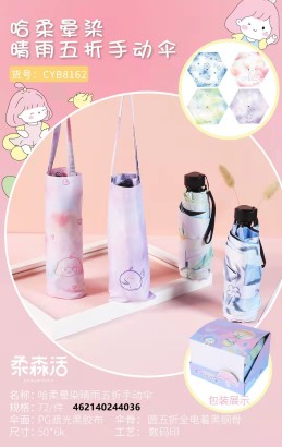 | CX混色-CYB8162哈柔晕染五折手动晴雨伞(72/件) | |||
